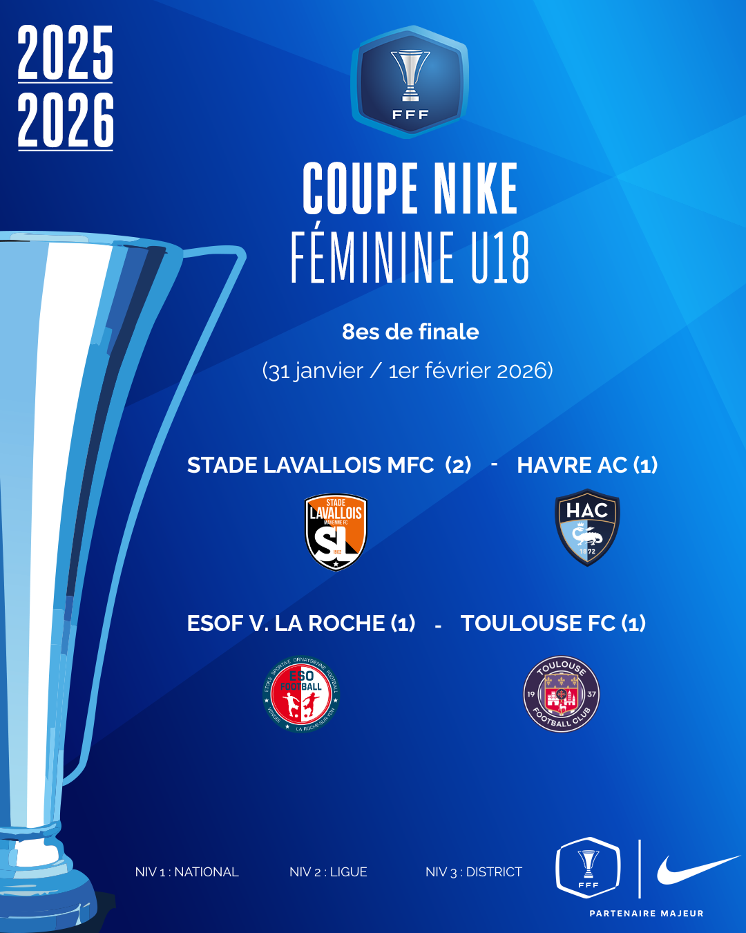 Retour sur les 16es de finale de la Coupe Nike Féminine U18 et les tirages réalisés ce midi à Paris.