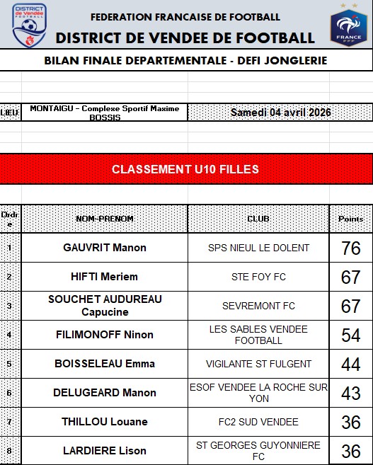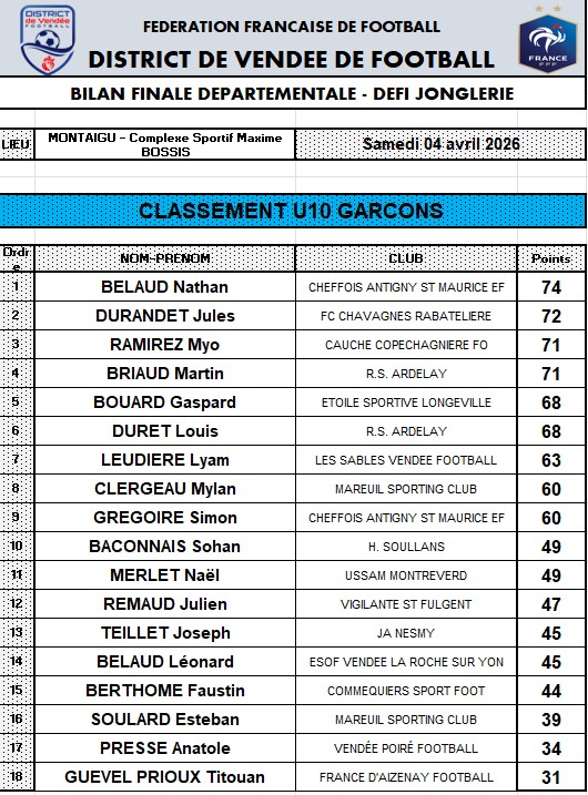 Ce rendez-vous incontournable ancré sur le territoire vendéen, qui a réunit cette année 79 jeunes joueuses et joueurs, U10 à U12, fait suite à une première phase de finales par secteurs organisée mi-mars et permet de mettre en lumière le travail technique réalisé tout au long de la saison au sein des clubs.