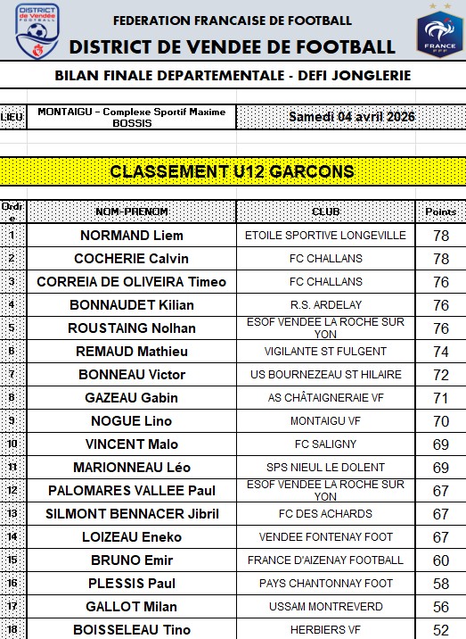 Samedi avait lieu la finale départementale du Défi-jonglage, organisée à Montaigu en marge du Mondial de Football.