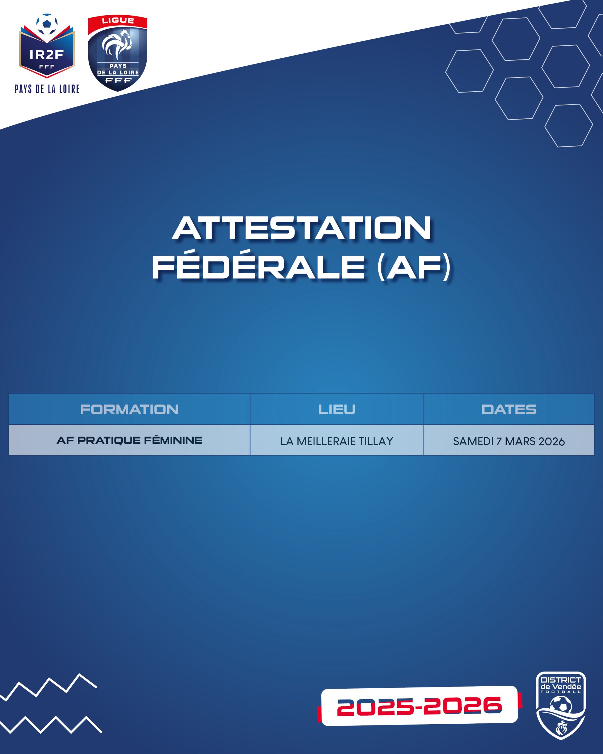 - Votre club prend en charge votre formation. Inscription sur : https://portailclubs.fff.fr/formations