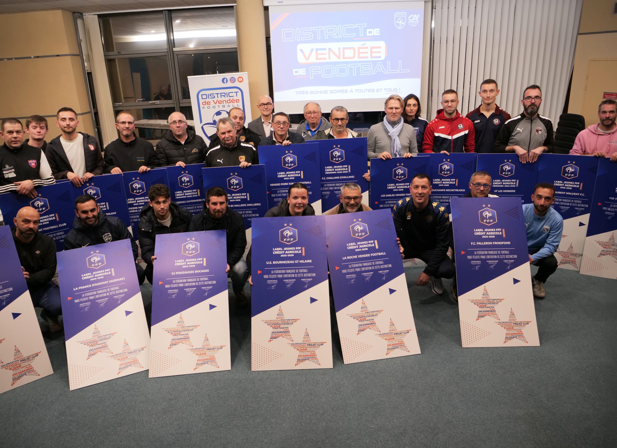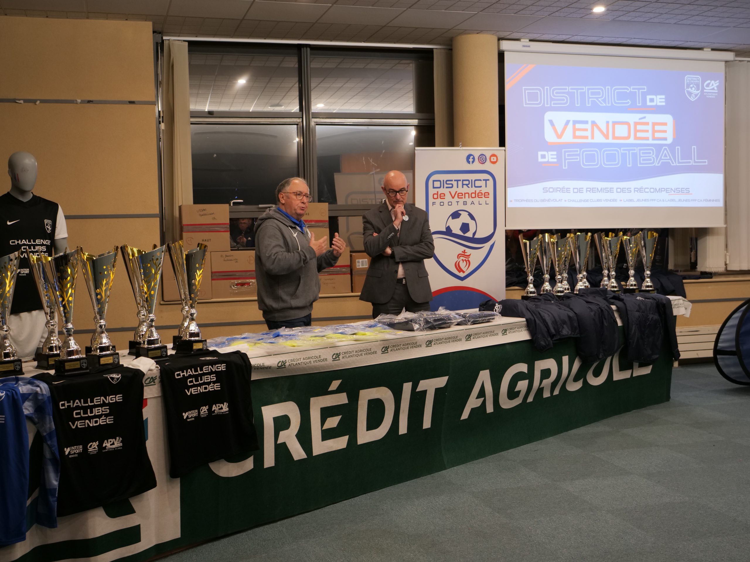 Cette soirée a permis de récompenser les lauréats du Trophée du Bénévolat, du Challenge Clubs Vendée et des Labels Jeunes FFF CA 2025-2028, aux côtés de notre partenaire, le Crédit Agricole Atlantique Vendée.