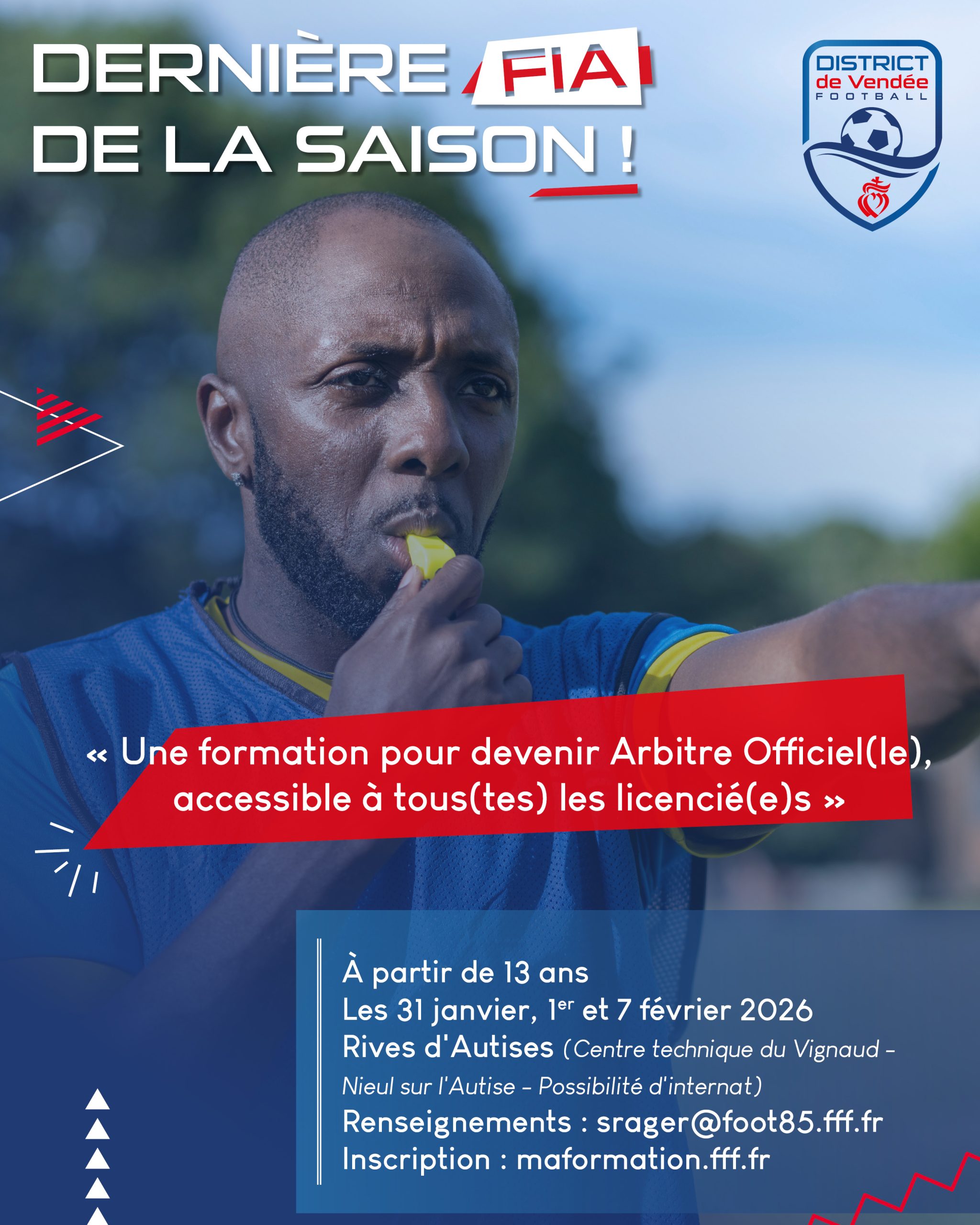 Pour rappel, pour les clubs concernés, vous avez jusqu’au 31 janvier 2026 pour vous mettre à jour vis à vis du statut de l’arbitrage.
